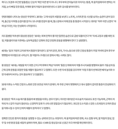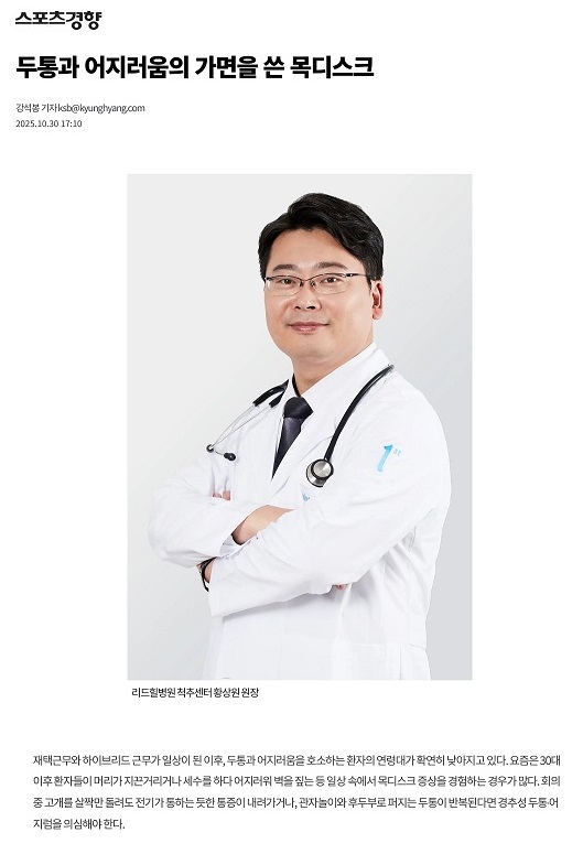 [언론 보도] 두통과 어지러움의 가면을 쓴 목디스크