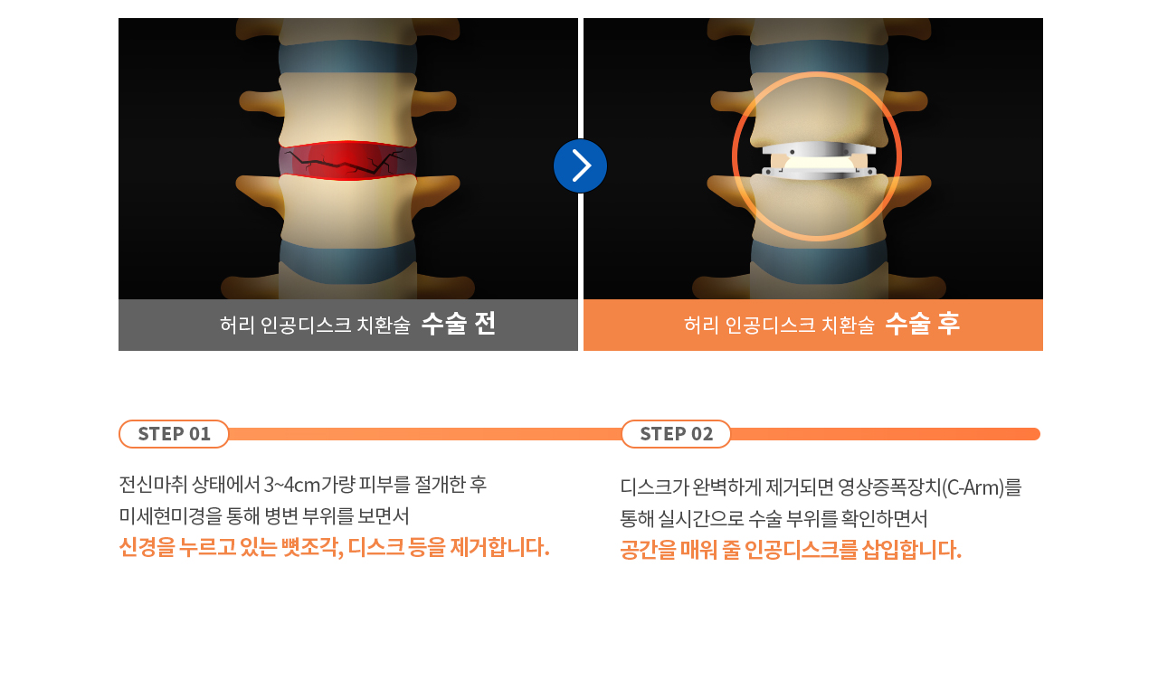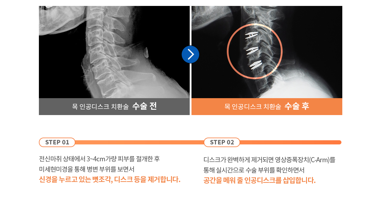 목허리디스크, 척추협착증, 척추전후방전위증, 척추측만증, 거북목증후군, 신경성형술, 풍선확장술, 인공디스크치환술